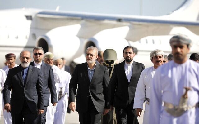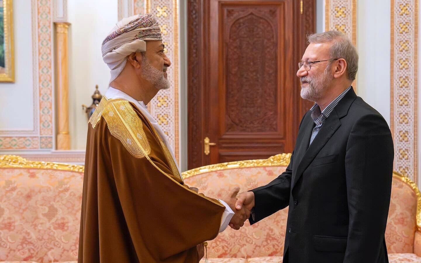 Tại Oman, đoàn tùy tùng của ông Larijani đã chia sẻ những bức ảnh ông gặp gỡ Bộ trưởng Ngoại giao Oman Badr al-Busaidi, người trung gian chính trong các cuộc đàm phán giữa Mỹ và Iran, cùng với một bức thư được bọc trong lớp nhựa, và ngồi cạnh nhà ngoại giao Oman.