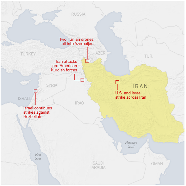 Đô đốc Brad Cooper, người đứng đầu Bộ Tư lệnh Trung ương Mỹ, cho biết các cuộc tấn công tên lửa của Iran đã giảm 90% kể từ thứ Bảy. Israel tuyên bố đang tấn công Hezbollah ở Lebanon. Hạ viện Mỹ đã chặn một biện pháp nhằm hạn chế quyền lực chiến tranh của Tổng thống Trump.