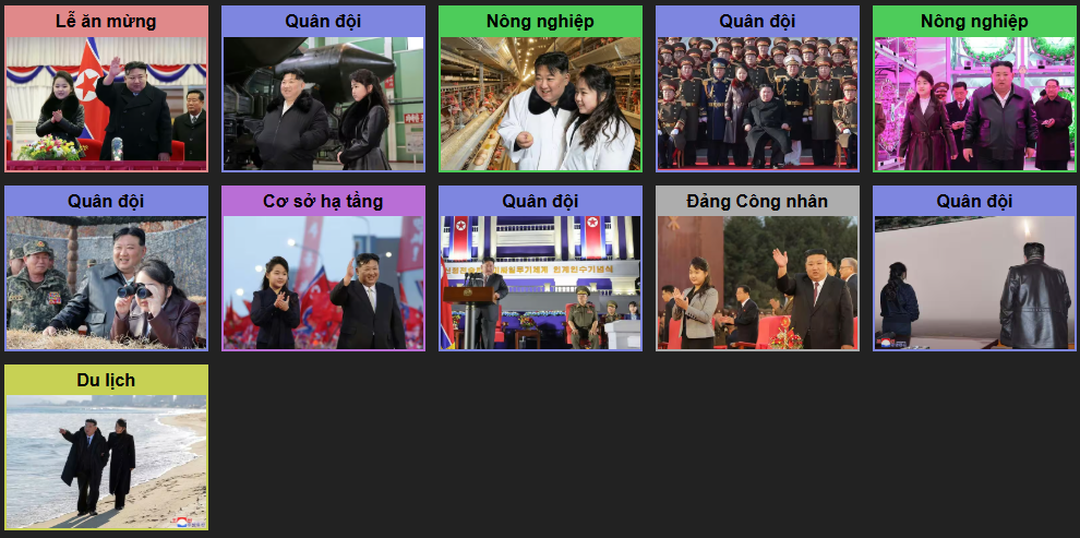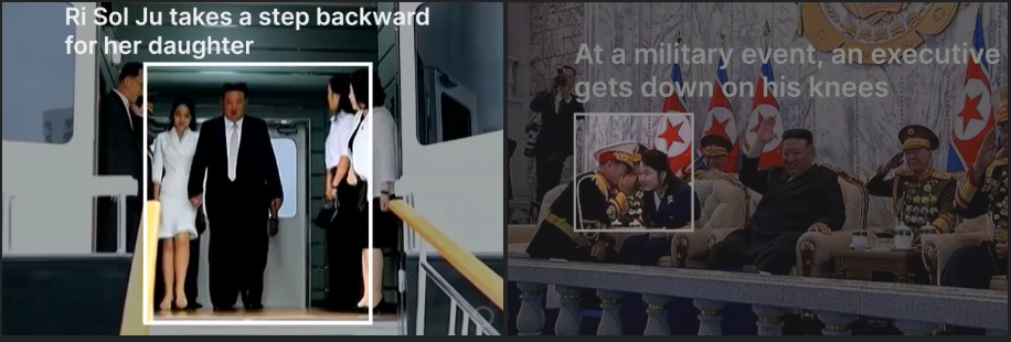 Sự tiếp xúc thân mật giữa nhà lãnh đạo độc tài và con gái ông cũng rất đáng chú ý. Từ năm 2024 đến năm 2025, đài truyền hình KCTV đã phát sóng đoạn phim Kim Jong Un ôm con gái và áp má vào má cô trong một buổi lễ đón năm mới. Việc sử dụng góc quay trực diện cho thấy những khoảnh khắc này đã được dàn dựng để thể hiện tình cảm giữa cha và con gái.