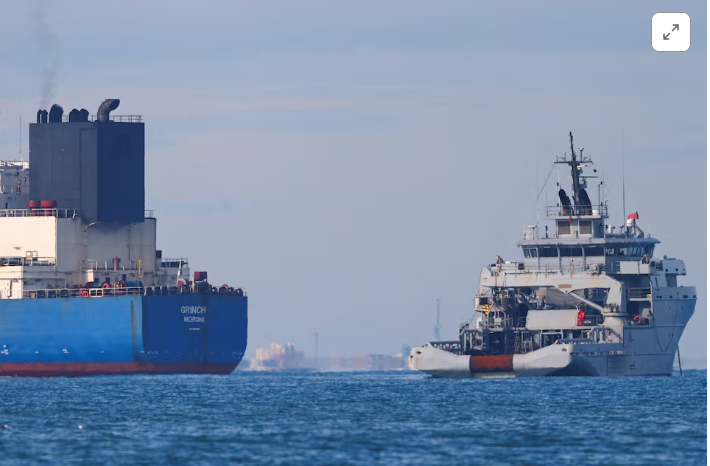 [1/2] Một tàu hải quân Pháp bao vây tàu chở dầu GRINCH, bị Pháp chặn lại ở Biển Alboran vì nghi ngờ hoạt động dưới cờ giả và thuộc hạm đội ngầm của Nga, cho phép Nga xuất khẩu dầu bất chấp lệnh trừng phạt, và bị chuyển hướng đến cảng Marseille-Fos, trong Vịnh… Mua quyền cấp phép, mở tab mới Đọc thêm
