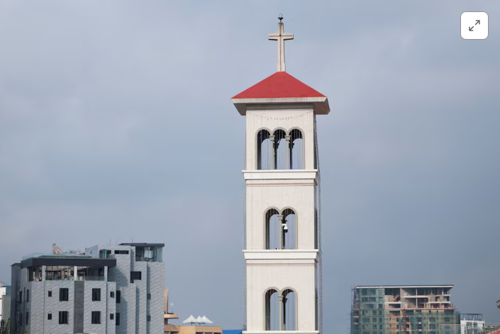 Ảnh 1/4: Một cây thánh giá tại Nhà thờ Đức Mẹ Lên Trời được nhìn thấy sau các cuộc không kích của Mỹ nhằm vào các chiến binh Nhà nước Hồi giáo, theo Tổng thống Mỹ Donald Trump và quân đội Mỹ, tại Ikoyi, Lagos, Nigeria, ngày 26 tháng 12 năm 2025. REUTERS/Sodiq Adelakun