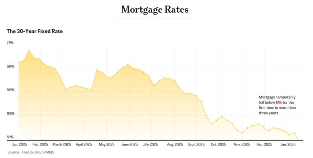 Khi Tổng thống Donald Trump bắt đầu nhiệm kỳ thứ hai tại Nhà Trắng, lãi suất thế chấp cố định 30 năm ở mức khoảng 7%. Kể từ đó, lãi suất này đã giảm đáng kể, thậm chí tạm thời xuống dưới 6% lần đầu tiên sau hơn ba năm. Điều này là do sự kết hợp giữa lợi suất trái phiếu kho bạc giảm và các chiến lược nhà ở của chính phủ liên bang nhằm giảm chi phí.