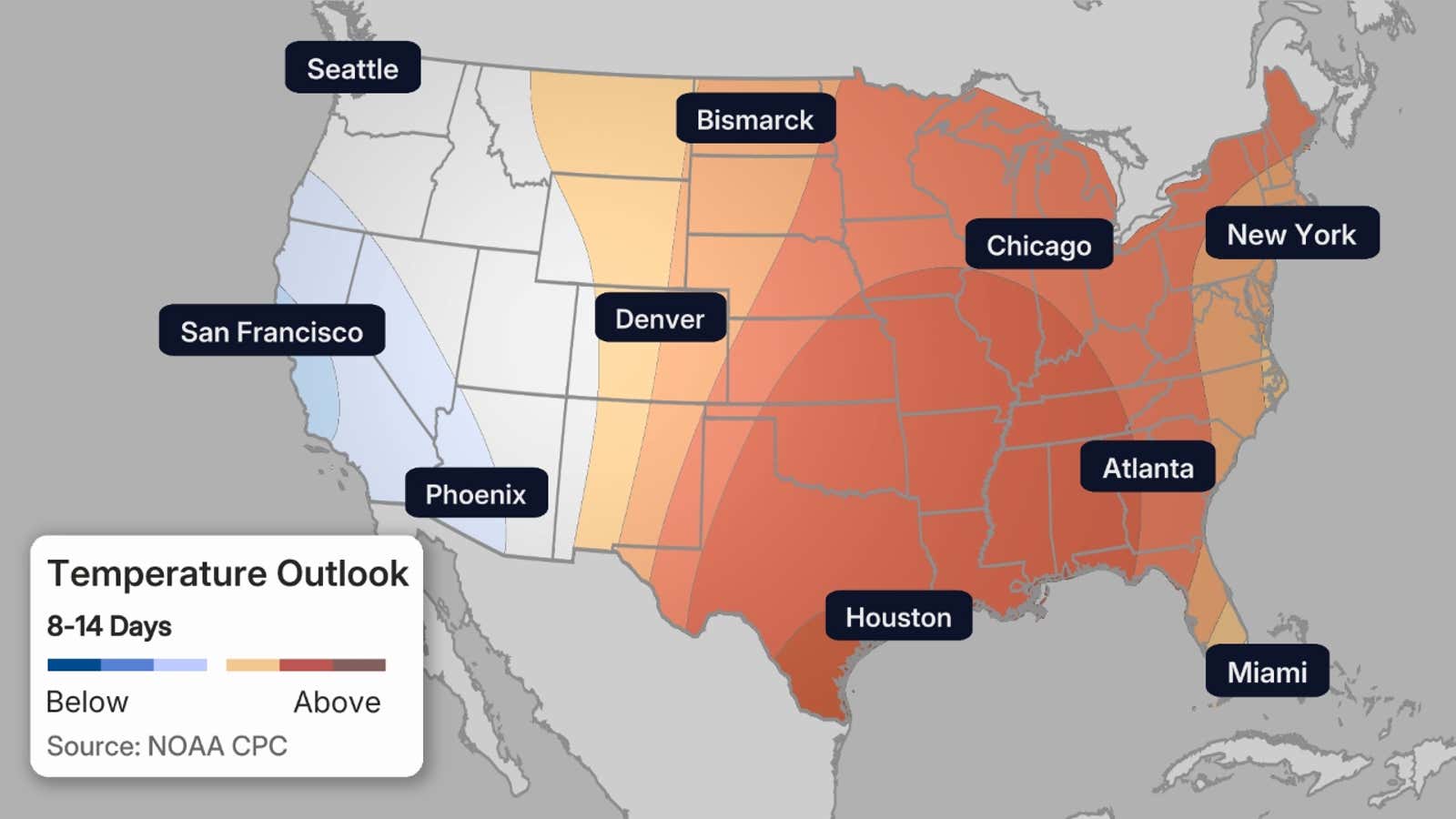 Tuy nhiên, dự báo của chúng tôi cho thấy không khí lạnh từ Canada sẽ tiếp tục tràn xuống khu vực phía Đông trong suốt tuần thứ hai của tháng Hai.