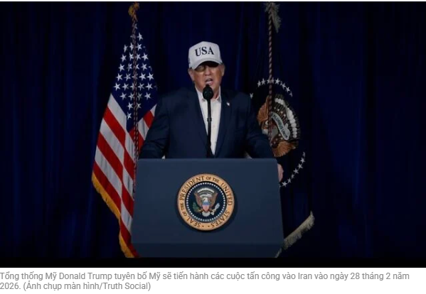 Tổng thống Mỹ Donald Trump tuyên bố Mỹ sẽ tiến hành các cuộc tấn công vào Iran vào ngày 28 tháng 2 năm 2026. (Ảnh chụp màn hình/Truth Social)