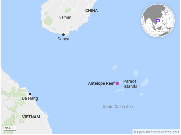Dựa trên hình ảnh vệ tinh thương mại mới nhất từ công ty Vantor của Mỹ, Sáng kiến Minh bạch Hàng hải châu Á thuộc Trung tâm Nghiên cứu Chiến lược và Quốc tế (CSIS) có trụ sở tại Washington cho biết hôm thứ Năm rằng khoảng 603 ha (1.490 mẫu Anh) đất đã được cải tạo tại Rạn san hô Antelope.Sáng kiến này cho rằng quy mô của nó “đáng chú ý” so với các thực thể khác của Trung Quốc ở quần đảo Hoàng Sa, bao gồm cả