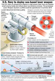 - HELIOS (Hệ thống laser năng lượng cao tích hợp bộ làm chói mắt và giám sát quang học): Một hệ thống laser chiến thuật 60 kW được tích hợp vào Hệ thống Chiến đấu Aegis trên các tàu khu trục lớp Arleigh Burke, chẳng hạn như USS Preble . Nó có thể làm chói mắt các cảm biến hoặc gây hư hại vật lý cho các mục tiêu như máy bay không người lái và tàu nhỏ.